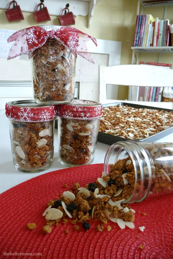 The beauty and simplicity of homemade granola is why itβs one of my favorite go-to holiday gifts. In fact, I usually keep about a half-dozen extra granola-filled jars on hand, so I always have a delicious gift ready for those unexpected βuh-oh!β moments when you realize you inadvertently forgot someone, or if I need a thoughtful gift for the host of a last-minute holiday gathering.