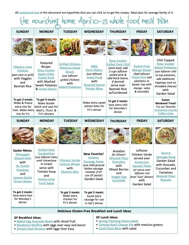 Bi-Weekly Whole Food Meal Plan for April 10–23